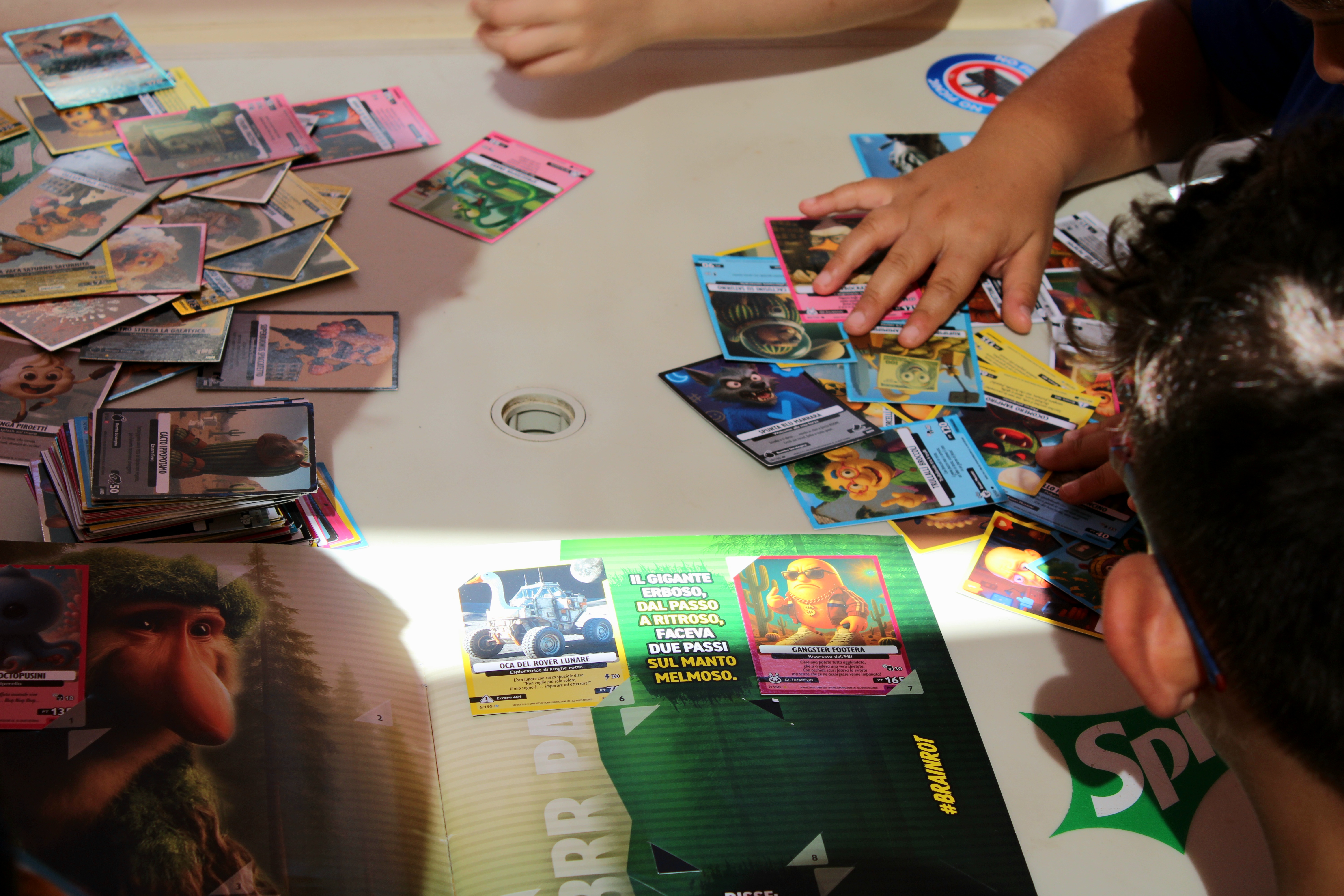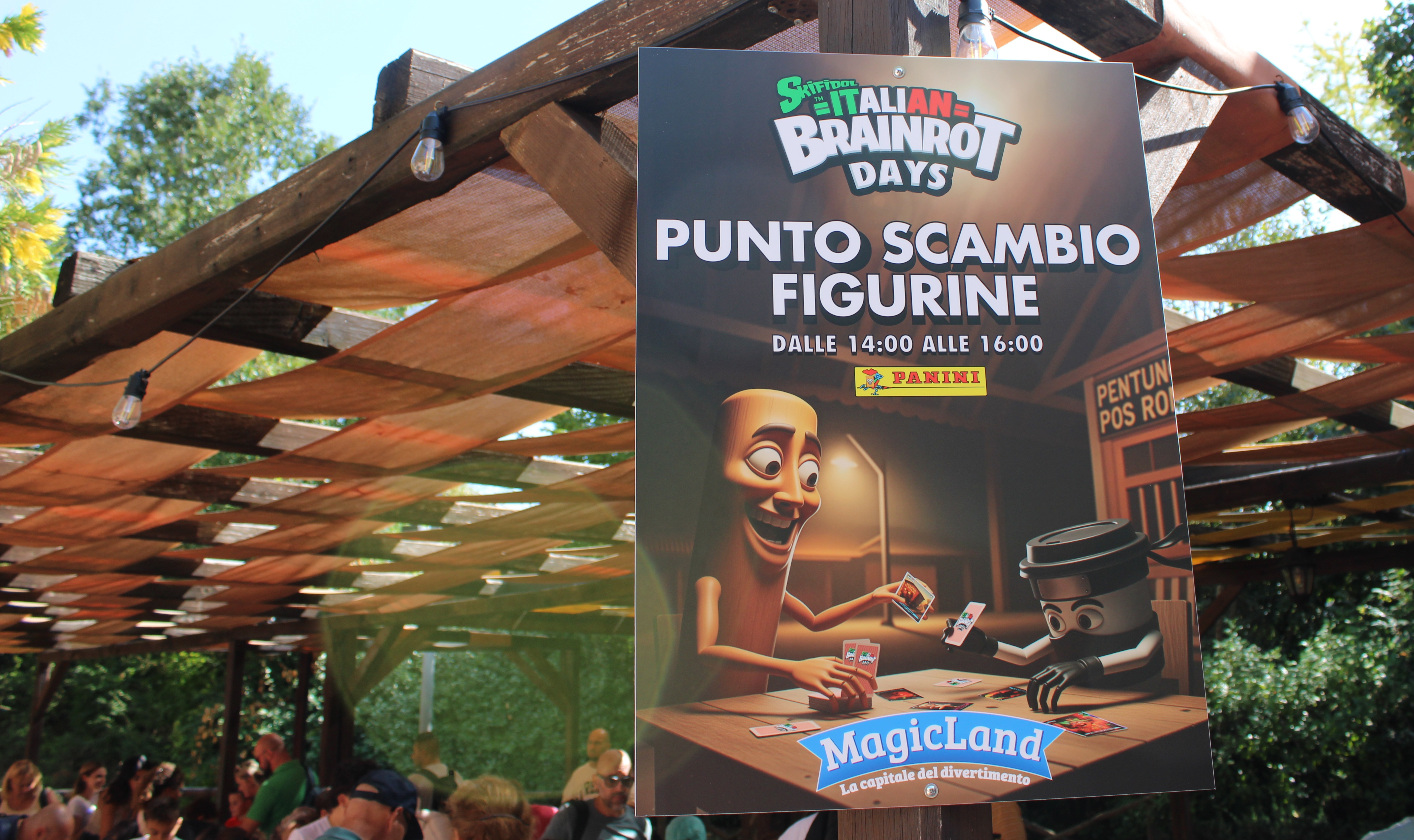 Area scambio figurine Panini Skifidol Italian Brainrot e spettacolari figurine giganti per selfie e photo opportunity.